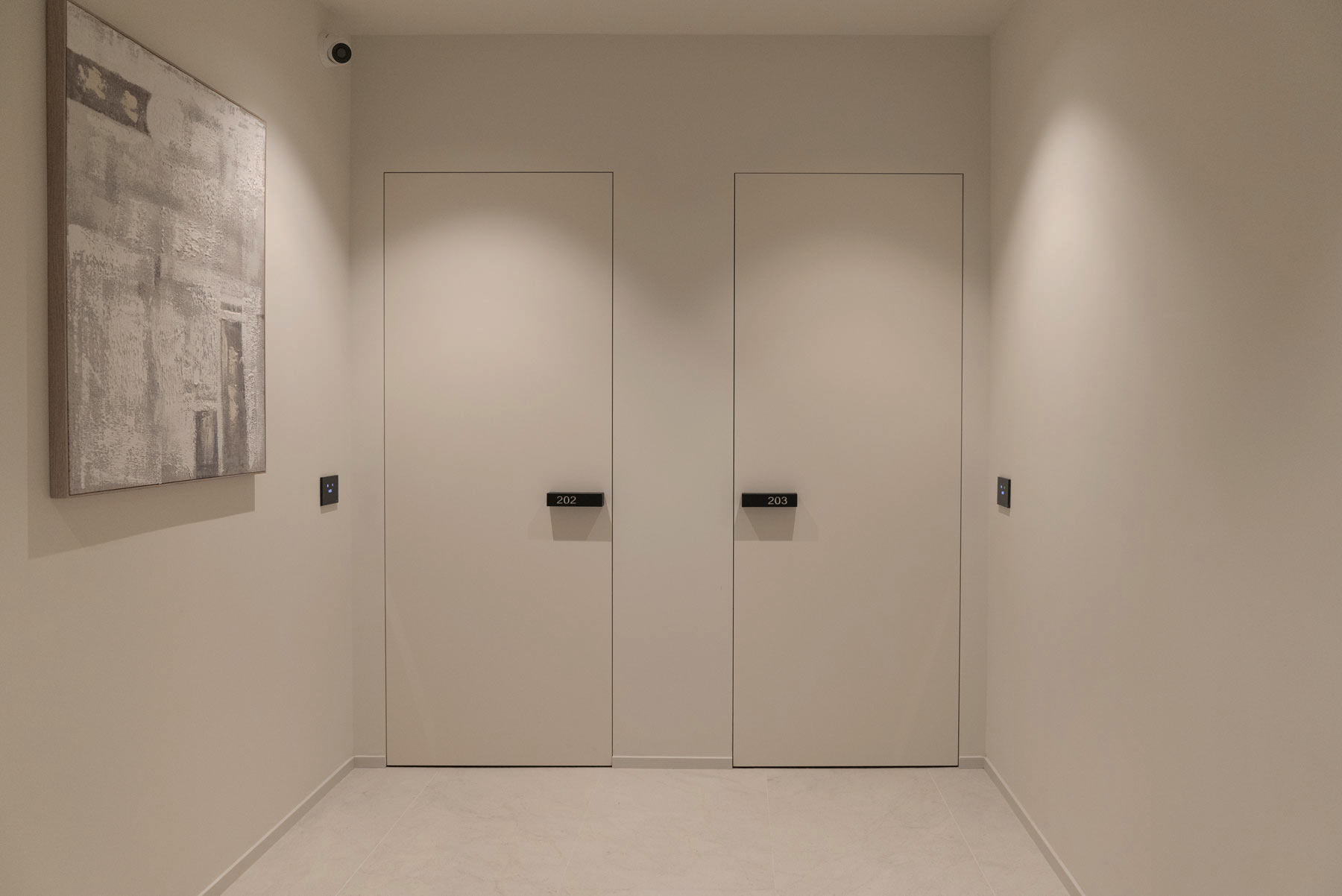 • porta filomuro pieghevole 90° (spingere e tirare)